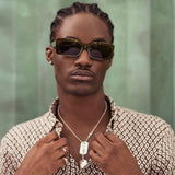 The supercool, elongated rectangular frame means The Kai are great for more rectangular faces. Plus they’re made from 100% recycled materials and for every pair bought we will protect 25 people from river blindness, in partnership with Sightsavers.